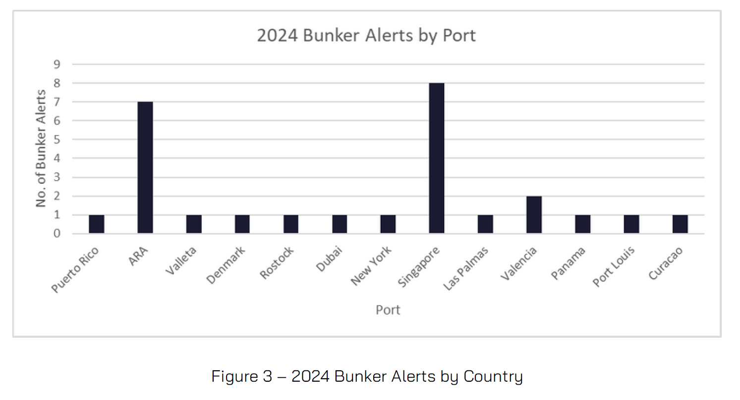 Singapore (30%) and ARA (26%) were the regions/ports most frequently requiring a Bunker Alert to be issued. But as these are the two busiest bunkering regions, it is not too surprising.