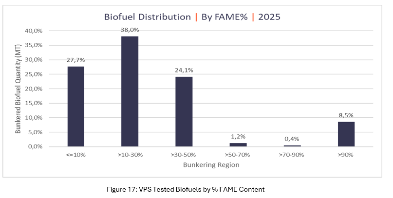 The majority of biofuels continue to contain mainly Fatty Acid Methyl Esters (FAME) as the bio-component, although VPS continue to receive samples containing HVO, HEFA, Cashew Nut Shell Liquid (CNSL) and Tyre Pyrolysis Oil (TPO).