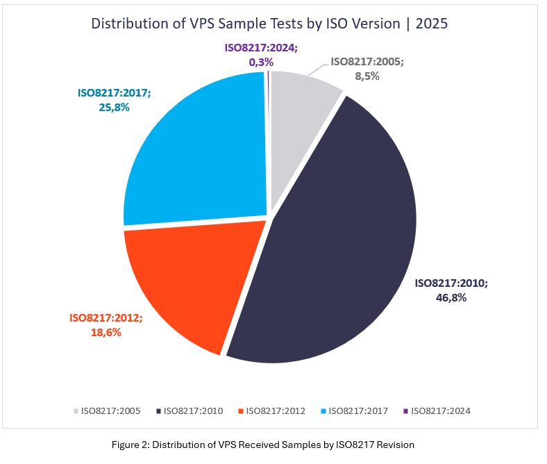 It is surprising that just over 8% of samples received by VPS for testing in 2025, are still being purchased against ISO8217:2005. This revision is over 20 years old and bears little resemblance to today’s fuel. Therefore, vessels purchasing fuel to this standard are at greater risk of damages and environmental non-compliance.