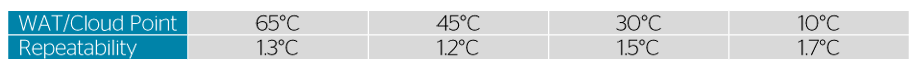 In addition to the WAT, the method provides a measurement of the WDT. This is vey useful as it is the temperature at which the last wax solids are melted into liquid when the oil is warmed. As such it provides an indication of the temperature that the fuel must be heated to in order to fully dissolve any wax solids that have precipitated.
