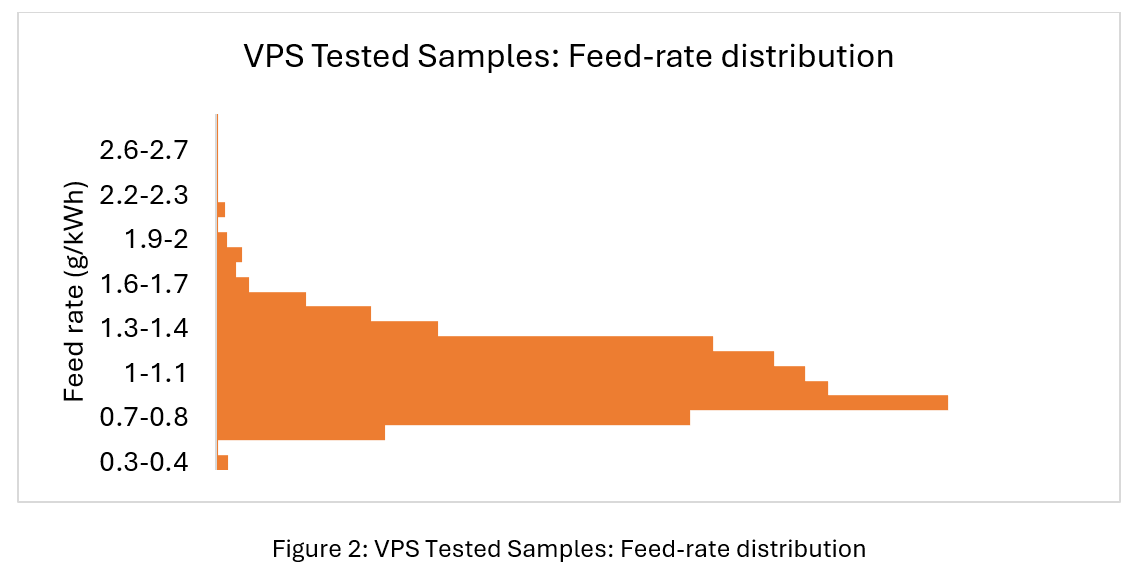 Leveraging VPS’ extensive database of oil analysis results gathered from a range of vessels and operating conditions, the average feed rate onboard during 2025 is currently 1.05g/kWh. This is over 35% higher than Everllence (MAN ES), and WinGD’s recommended minimum feed rate for routine engine operation. The vast majority of samples continue to show close to fresh BN levels for those vessels using 40BN products onboard, with BN levels routinely ranging up to 75BN for higher BN products used in conjunction with HSFO bunkers.