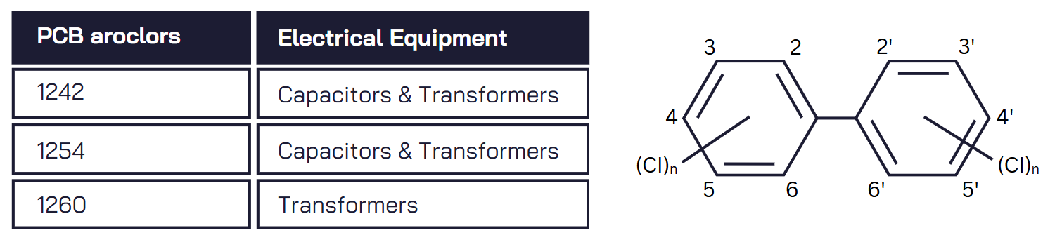Polychlorinated Biphenyls (PCBs) are synthetic chlorinated aromatic hydrocarbons known for their excellent electrical and thermal properties. These characteristics, along with their chemical stability, made them popular in various commercial applications in the UK, including use as an insulating fluid in capacitors and transformers from the 1950s to the early 1980s However, due to their resistance to biodegradation and their toxicity, and carcinogenicity, PCBs have raised significant environmental and health concerns. Consequently, their use has been restricted since the early 1970s and banned in electrical equipment by an international agreement in 1986. Unfortunately, common handling facilities have led to widespread contamination of mineral-insulating oil. Oil-filled electrical equipment covers, but is not limited to, transformers, bushings, switchgear, tap changers, and capacitors.