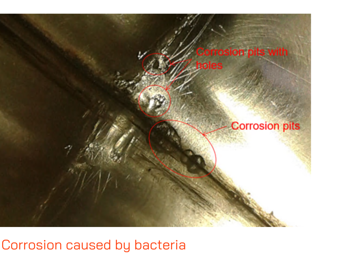 Microorganisms (bacteria, yeast, fungi) – Given the correct conditions in fuel storage systems, micro-organisms can grow and multiply. Bacteria, fungi and yeast are living organisms which may be present in fuel storage tanks and in particular where water is allowed to build up. Distillate fuels are more prone to bacterial infection. Microbial infection can lead to slimy deposits in tank bottoms, plugging of filters, pitting corrosion on fuel tank bottoms or at oil water interface and injector fouling.