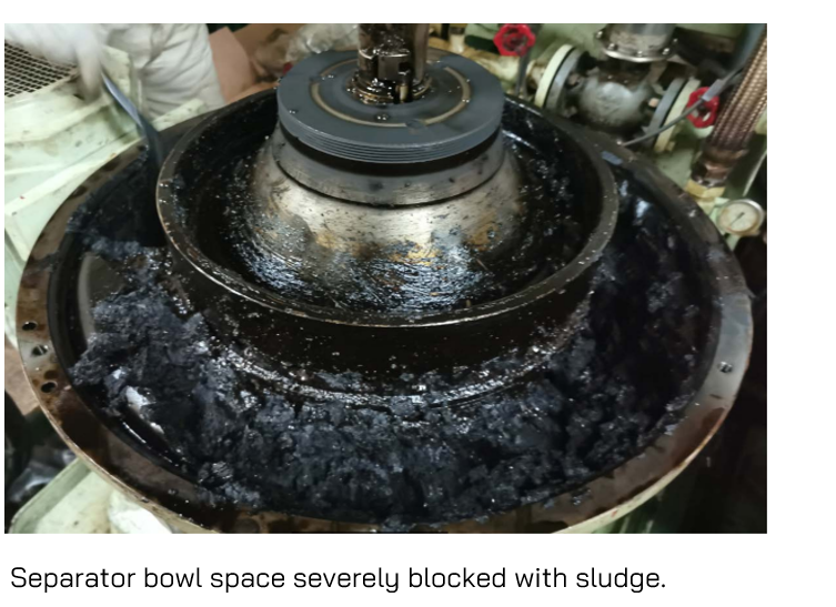 The sludge formation was so severe that the engineers had to clean the purifier bowl assembly every 4 hours, compared to a usual cleaning interval of 250 hours. At one point, the engineers discontinued using the fuel, as the vessel ran out of spare parts. Analysis of system samples later confirmed that the sludge formation was indeed due to unstable fuel and not from on-board mixing.