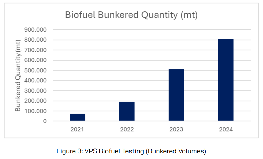 For over four years VPS have led the market in the understanding of marine biofuels and methanol. VPS laboratories have undertaken significant R&D work regarding innovative testing technologies and methods, to assist in improved fuel management and environmental compliance. Between 2021-2024 VPS tested samples equating to over 1.6million mt of delivered biofuels. This work has covered bio-components such as the most common FAME, plus HVO, Cashew Nut Shell Liquid (CNSL) and Tyre Pyrolysis Oil (TPO). Such experience and expertise are then passed on to VPS customers to enhance their understanding of such fuels and achieve the emissions reduction and efficiency improvements required.