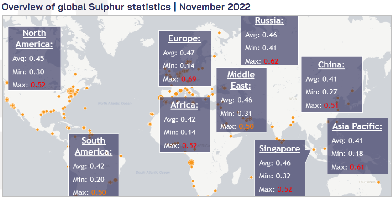 However, towards the end of 2022, VPS testing and reporting showed that VLSFO sulphur off-specification fuels were still being delivered across most regions of the world: