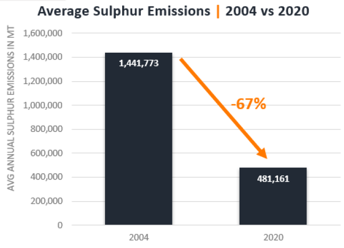 Back in January 2021, VPS compared the impact of the IMO introduction of MARPOL Annex VI back in 2005 to the sulphur levels tested by VPS in 2020 reporting an incredible 67% reduction in sulphur oxide emissions from global shipping over that time period: