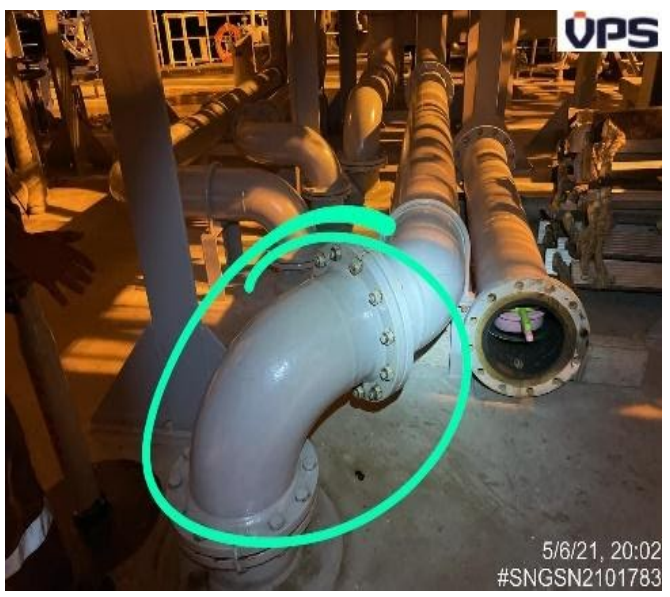 The VPS Surveyor discovered evidence that the pipeline flange before the Mass Flow Meter(MFM) had been opened and the bunker cargo was transferred out via this outlet to vessel B. See photo: