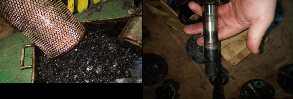 Figures Showing sludge formation in filters (left) and ceased fuel pump plunger (right).